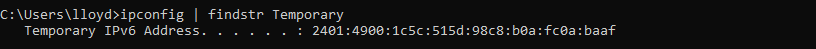 **ipconfig | findstr Temporary **