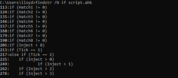 **findstr /N if script.ahk **