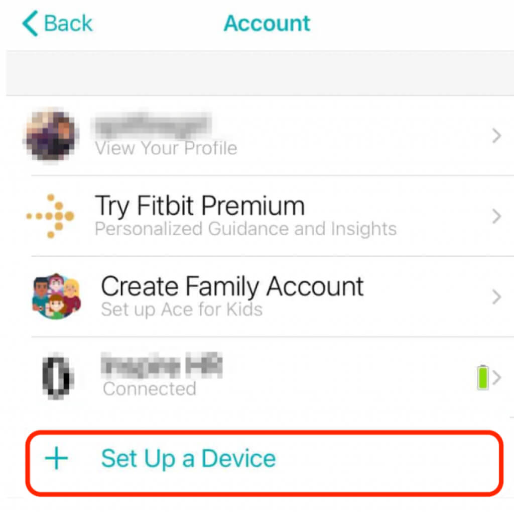 - Go to the Fitbit app on your smartphone, tap the **profile picture** to open your **Account****Settings** > **Set Up a Device**.