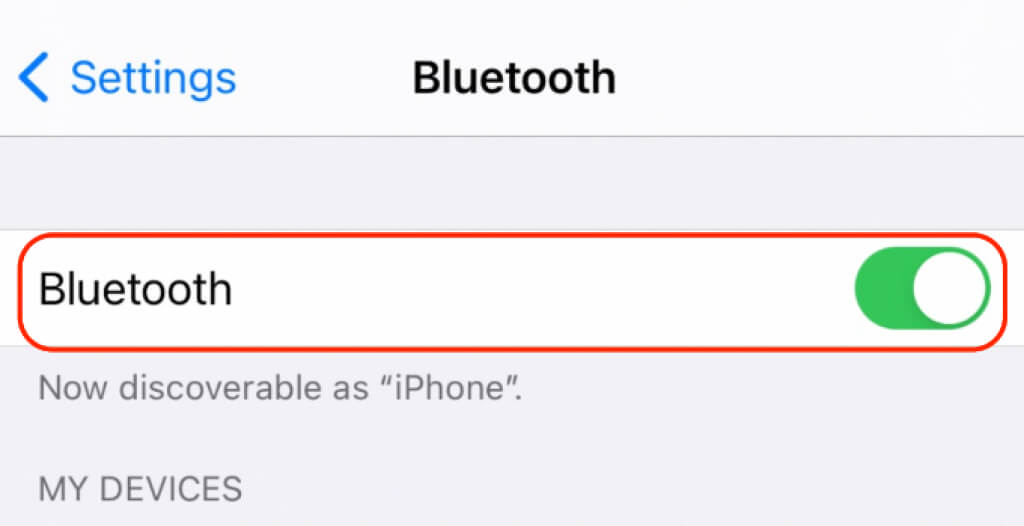 - On an iPhone, select Settings > Bluetooth and toggle the switch to turn the feature on.