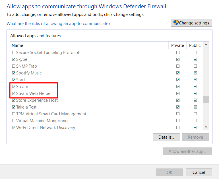 - Scroll through the list of apps until you find Steam and anything else related to the client. Check the boxes next to them to allow them to pass through the firewall.