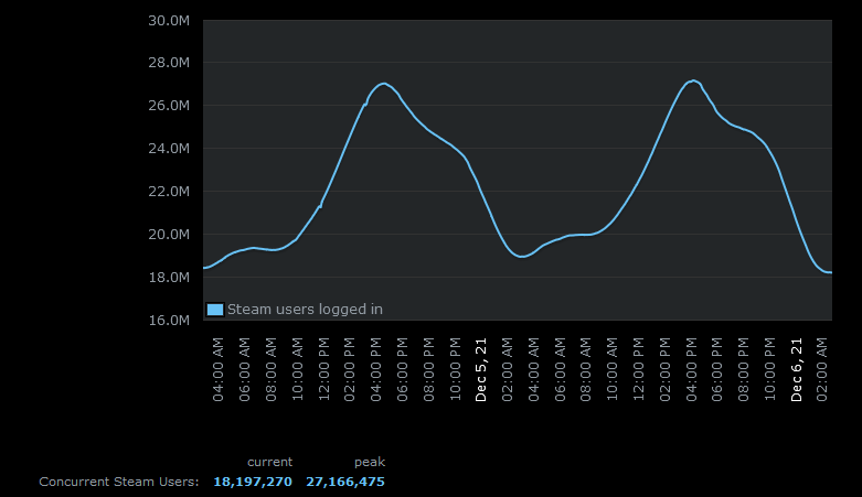 You can easily spot an outage just by looking at the Steam users graph.