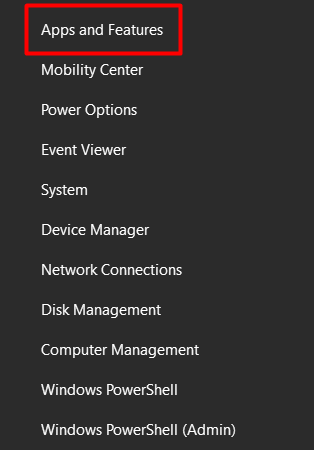 - Right-click on the Windows icon and select Apps and Features.