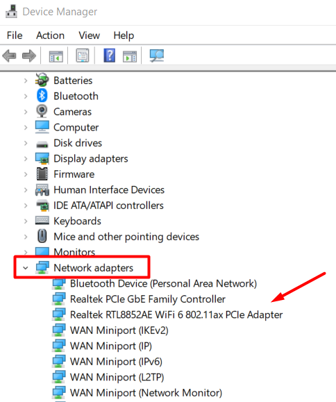 - Go to Network adapters and expand the menu to see the whole list of adapters.