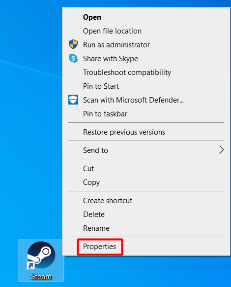 - Right-click the Steam client and select Properties.