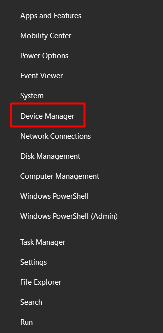 - Right-click on the Windows icon and select Device Manager from the list.