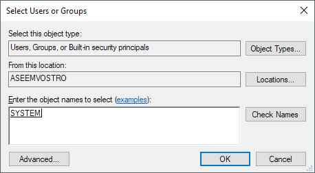 You want to make sure you leave the Account Unknown as is. Do not remove it. At this point, you should be left with** ALL APPLICATION PACKAGES** and SELF. Now we have to add two accounts. Click Add and type in System and then click on** Check Names**. Click OK and it will add that account to the list.