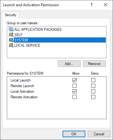 The Edit button under Launch and Activation Permissions should be clickable. If it’s greyed out, the PowerShell script didn’t run properly. When you click on edit, you might see a popup dialog warning you about unrecognized permissions.