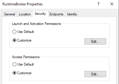 To fix this problem, we have to edit some permissions in Component Services for RuntimeBroker, but before we can do that we have to run a script that will allow us to make those changes.