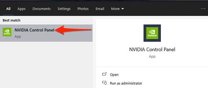 - Open the **Start** menu, search for **Nvidia Control Panel**, and select that in the search results.