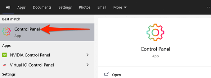 - Open the Control Panel on your PC. An easy way to do this is to access the Start menu, search for Control Panel, and select Control Panel in the search results.