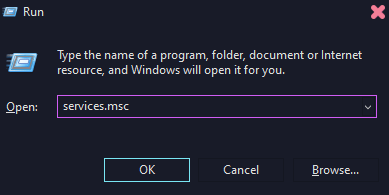 - Type services.msc in the Run box and press Enter.