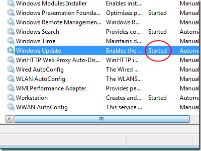 Back on the Services window, make sure the Windows Update Status is Started. If it is set to Started, close the window and you are done. If it is set to anything except Started, close the window and restart your computer.