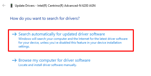 - Next, select Search automatically for updated driver software.