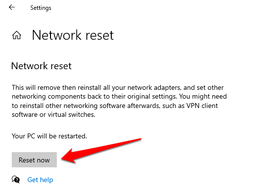 If the problem persists and you still can’t access the network, perform a network reset. That will reset VPN and proxy servers, reinstall network adapters, and revert all network configurations back to their original state.