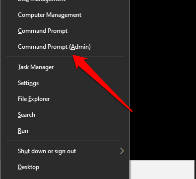 - Right-click the start button and select Command Prompt (Admin).