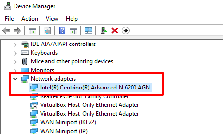 You’ll find the name of your PC’s Ethernet and Wi-Fi drivers labeled below the network types. Now you know which driver to update in the Device Manager.