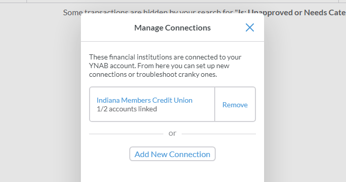 After YNAB has successfully connected, you’ll see another confirmation message. Now you’ll need to select the edit icon to the left of the account you’re trying to fix and go through the same relinking process in the section above.