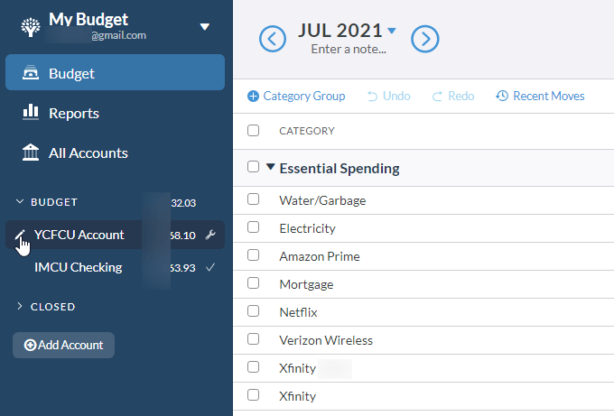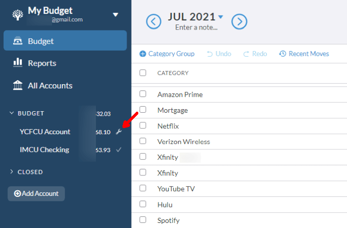 - Select the bank account from the main YNAB account page. Make sure to select the small edit icon to the left of the account name.