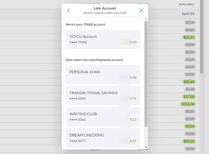 This time you’ll see the new account you just added show up in the list. Just select this bank and choose the specific account you want to link to YNAB.