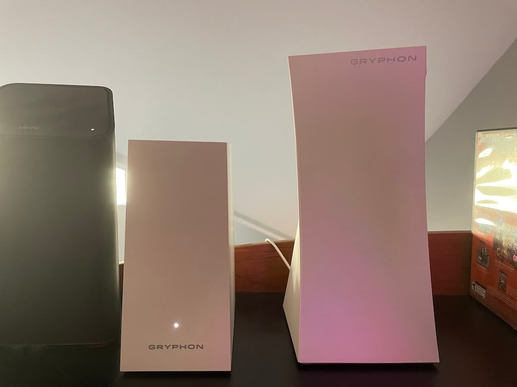 Gryphon sent two sets of their routers for us to test: the Gryphon Tower and the Gryphon AX router. While this review mostly focuses on the Gryphon AX router, we did test the Gryphon Tower. Spoiler: it’s good, but the AX is better.