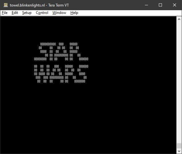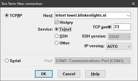 As you can tell, the address for this service is towel.blinkenlights.nl. With everything configured as above, just click OK and this happens.