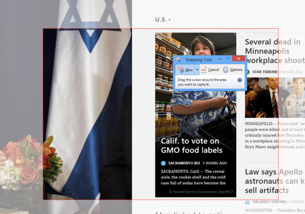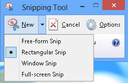 In Windows 8, you can take screenshots of Store apps by first opening the Snipping Tool and then going back and opening your Store app. While in the Store app, go ahead and press CTRL + PrtScr. Windows 8 will quickly switch back to the desktop where you have the snipping tool open and then switch back to the Store app with the screen overlay. Now you can start capturing depending on what option you chose.