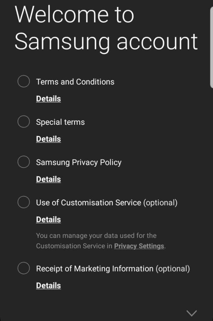 - Tap the relevant permissions in the Terms of Agreement screen.