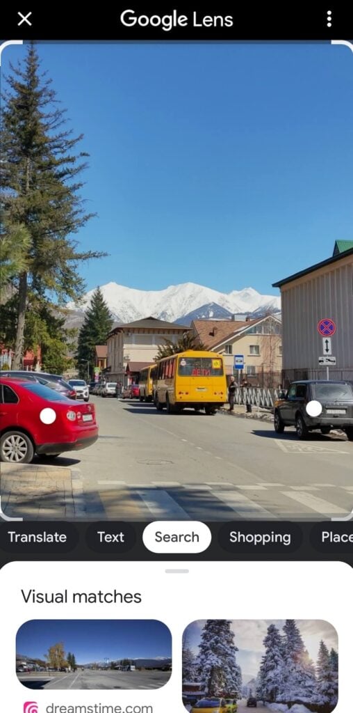 - Below the image, you’ll find the description of the objects found in your picture, visual matches from the search engine, and several options that allow you to translate any text found on the photo, find similar items online for sale, and more.