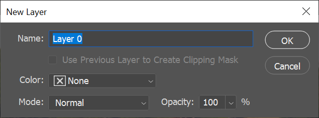 - Next, we’ll change the background layer into a regular layer that can be moved into a different spot in the layer stacking order and so you can change its blending mode or its opacity. Select **Layer **> **New** > **Layer from Background**. Alternatively, double-click on the layer in the Layers panel. Note that its new name will be Layer 0. Select the **OK** button.