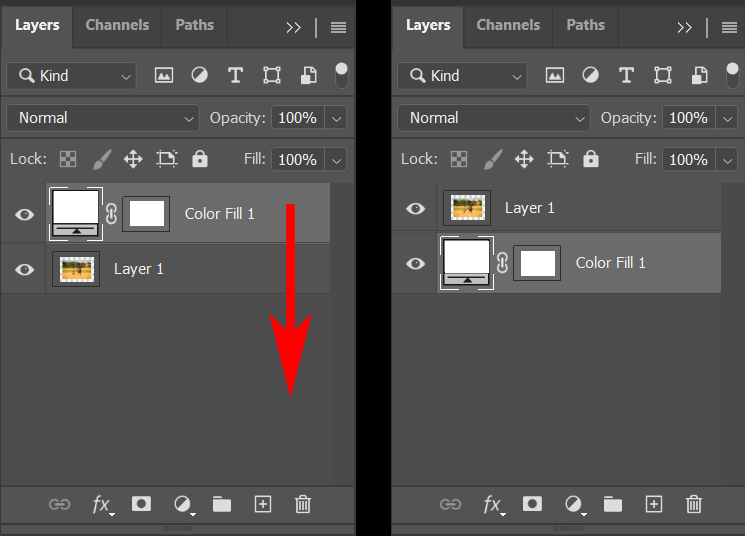 - Finally, in the Layers panel, drag the color fill layer you just created below the image layer.