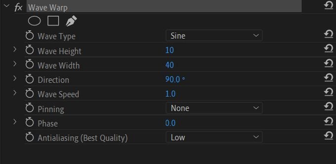 You should see the diamond-shaped keyframe appear in the mini timeline. A diamond icon with two arrows on either side of it will also pop up next to the Wave Height property. You can use this to add or remove keyframes, and to move from one keyframe to the next.