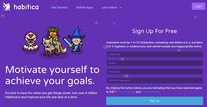When you sign up for the app, you get a character that will level up as you check things off your to-do lists. You can join solo or invite friends to join you. Then you can fight bosses and level up together.