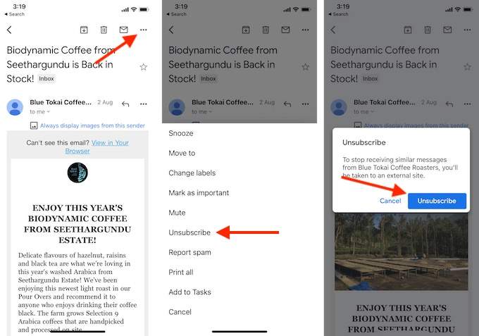 Similarly, you can unsubscribe using the Gmail app on your iPhone or Android smartphone as well.