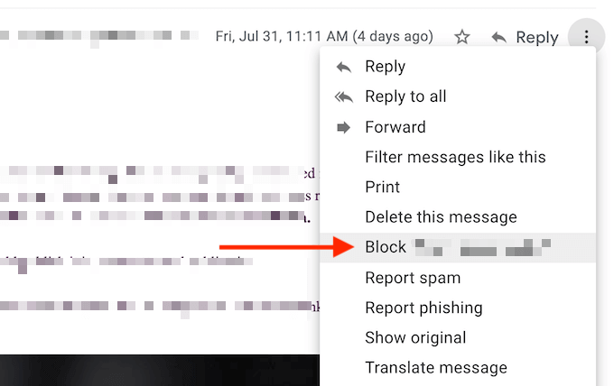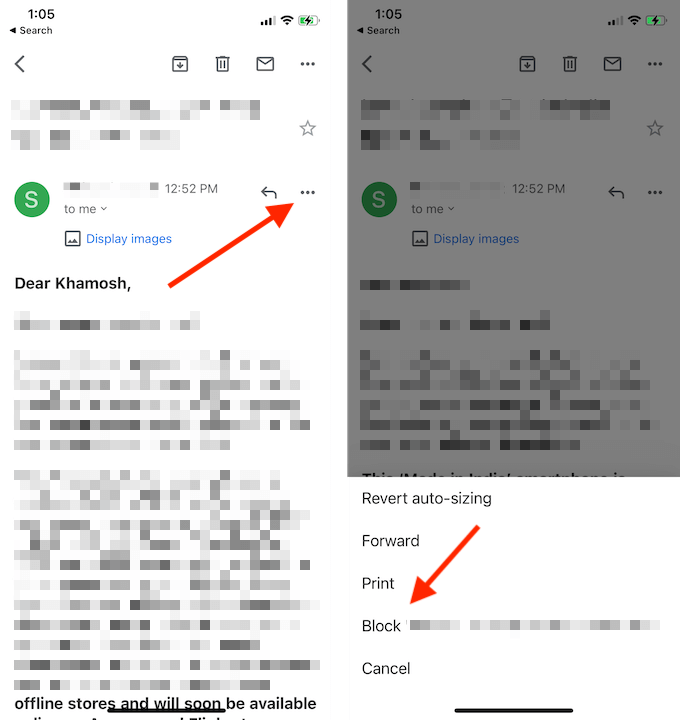 The process of blocking emails on the Gmail app for iPhone and Android is very similar.
