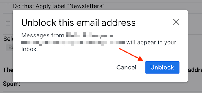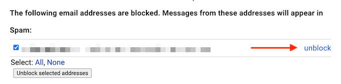 - Scroll down to the bottom of the section. Here, you’ll see a list of all the blocked addresses. To unblock one, click the **Unblock** button.