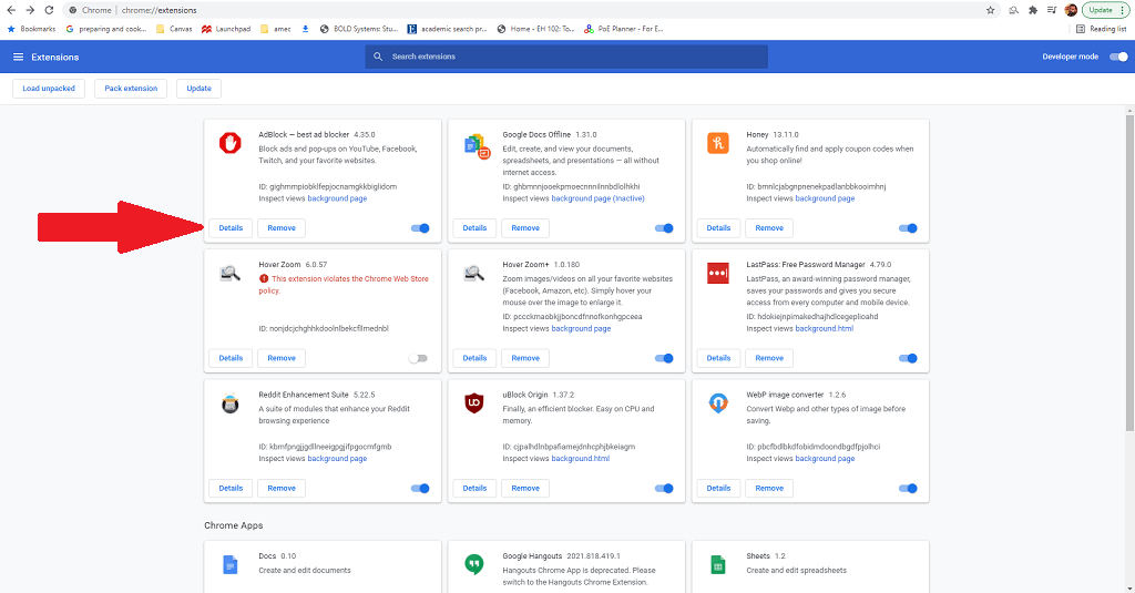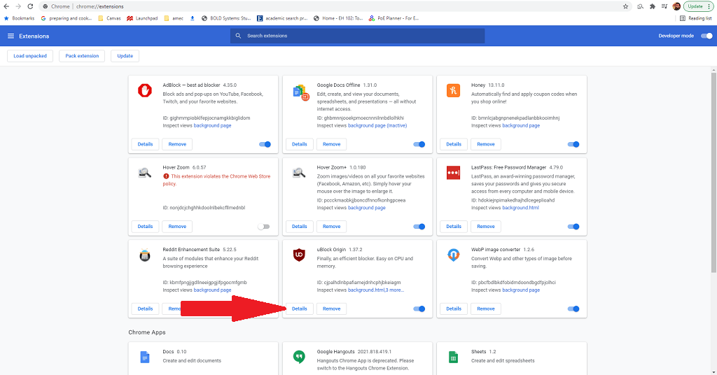 - Select uBlock Origin and then select Details.