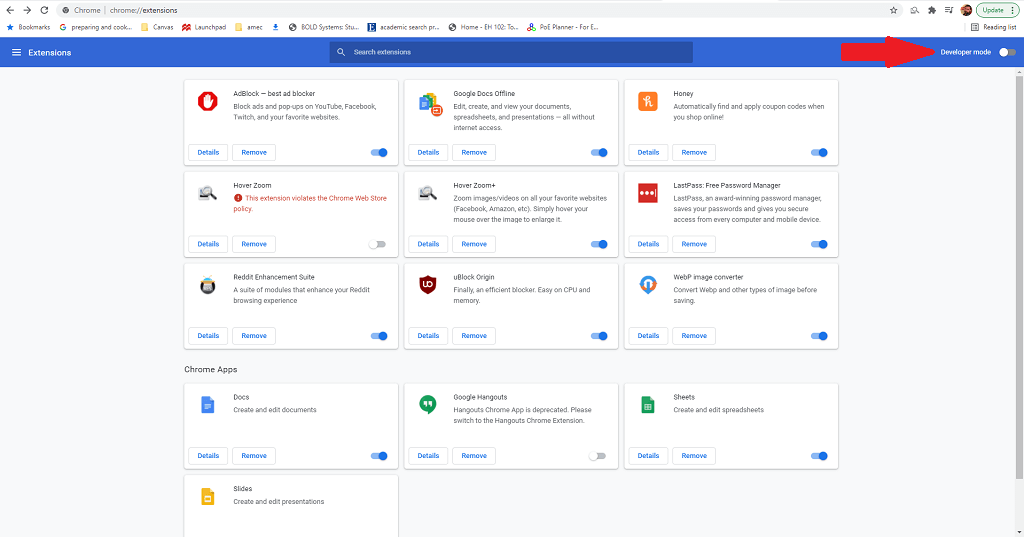 - in the upper-right corner of the screen, select **Developer Mode.**