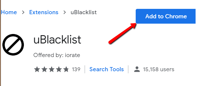 First, download it. Search for uBlacklist on the Chrome Web Store and click Add to Chrome.