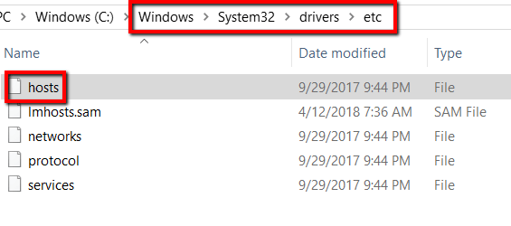 Another option is to edit the hosts file. To make this happen, go to Windows > System32 > drivers > etc. Right-click on the **hosts **file.