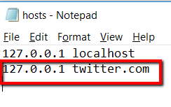 Now, enter the same bunch of numbers on the next line. But instead of keying in “localhost”, enter the name of the website that you want to block.