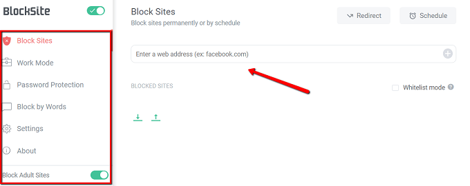 One of your options is to specify the website that you want to block. Just enter its address on the appropriate field.