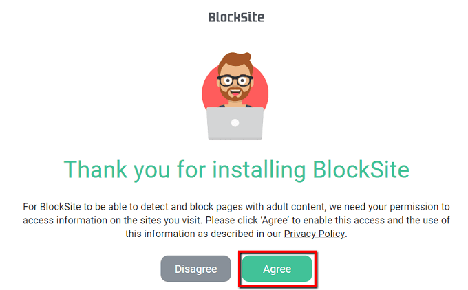 Once finished with the installation, you will be redirected to a page where this says so. To proceed, click Agree.
