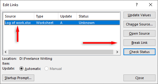 Note: You can use Excel’s VBA code to break links in your current workbook automatically. However, such a macro will only delete the links when you click Break Link as above, so setting it up isn’t worth the effort.