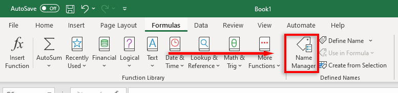 - In the Formulas tab, select Name Manager.