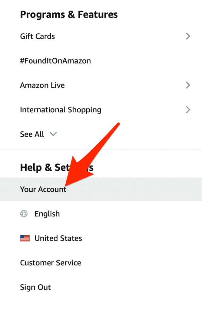 - Go to Amazon.com, sign in to your account, and select the Options menu.