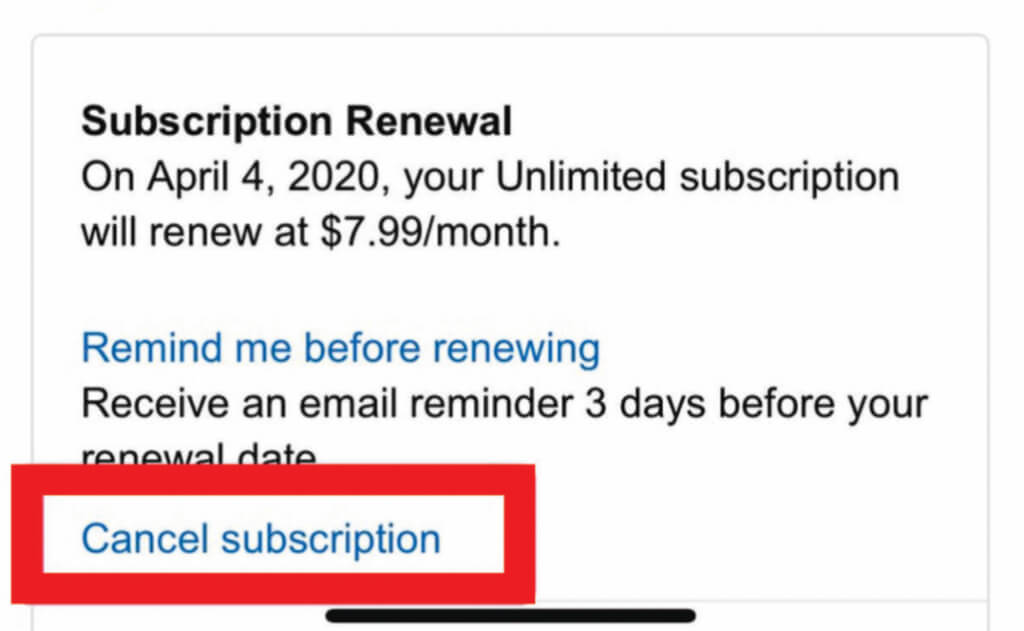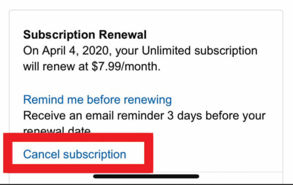 - Next, select **Cancel Subscription**, give a reason why you want to cancel your subscription, and tap **Submit and****Confirm Cancelation**.
