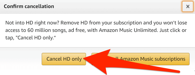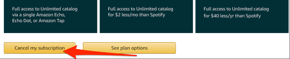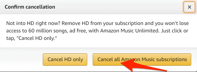 - Confirm that you want to cancel all Amazon Music subscriptions.