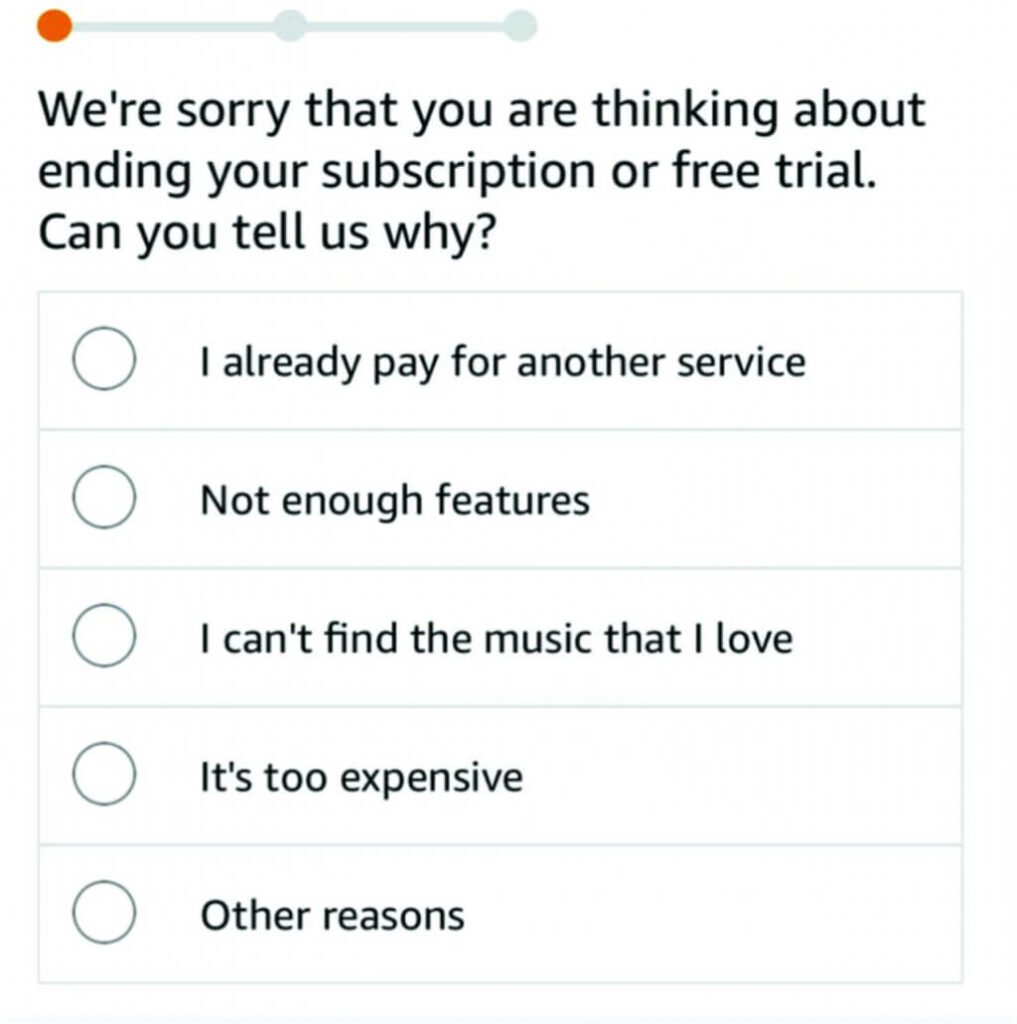 - Select your **reason **for wanting to cancel Amazon Music.