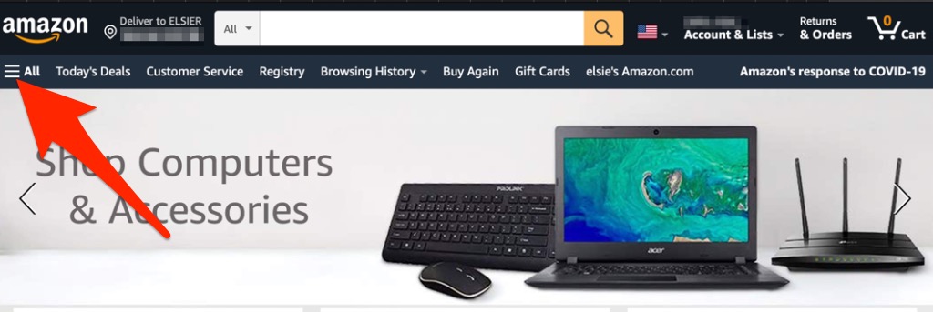 - Open **Amazon.com **on your iPhone’s browser, sign in and tap the Amazon menu.